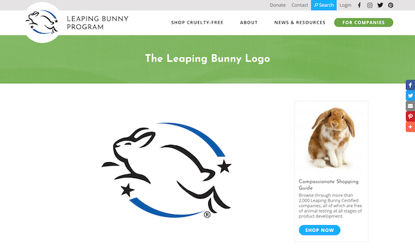 リービング・バニーは化粧品の実験で最も利用される動物のうさぎをモチーフにしたロゴで、一切の動物実験をしていないブランドに与えられます。他の認証マークとしては、アメリカに拠点を置くPEATのビューティー・ウィザウト・バーニーズ(Beauty Without Bunnies)も知られた認証のひとつでこちらも、やはりうさぎをロゴのモチーフとしています。