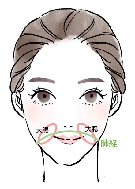 顔にも足裏や手のひら同様に反射区というものがあります。反射区とは、各器官や臓器に繋がっているといわれている末端神経が集まった個所。ほうれい線ができる位置には、大腸の反射区があり、大腸が弱っていたり負担が掛かっていたりすると、ほうれい線ができやすくなります。
