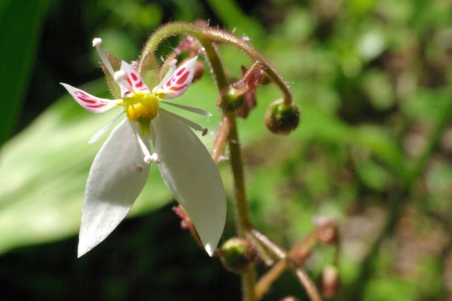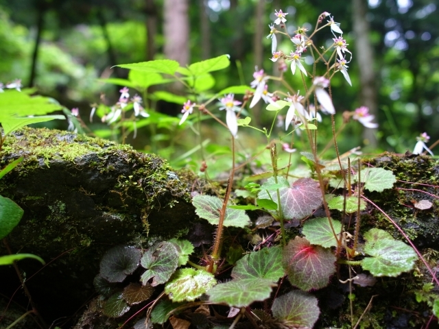 初夏の頃になると茎が20㎝~50㎝くらいに延び、白い花を咲かせます。 里や山の水が滲んでいるような湿った石垣や岩の間に自生します。