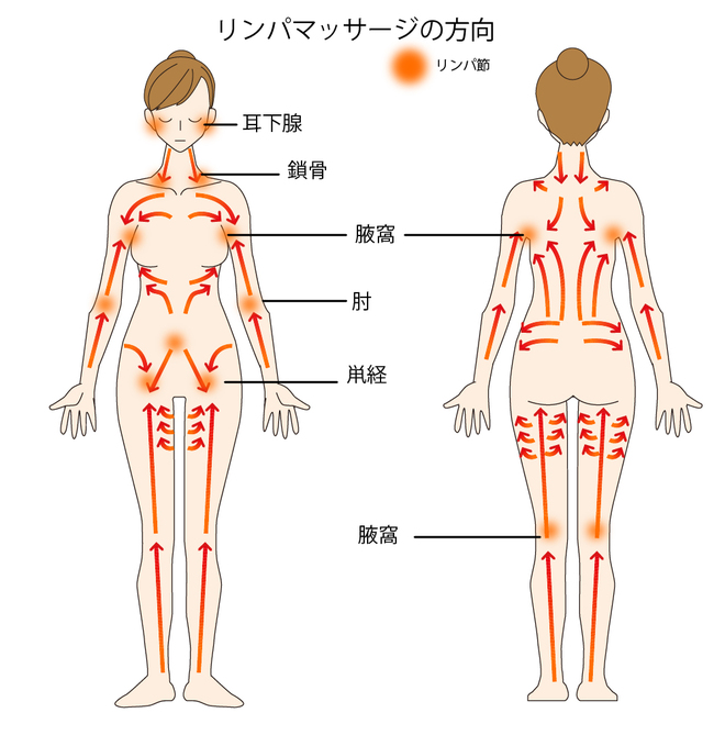 隙間時間を利用して、手の平で末端から心臓に向けてやさしくなでるようにマッサージするだけでもリンパは流れます。 夏太りの原因は、基礎代謝が大きく関係しています。 夏太りを避けるためにも、代謝スイッチをオンにして快適な夏を過ごしましょう。