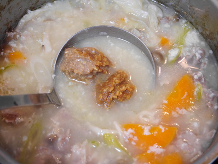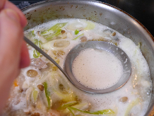 - 灰汁が出てきたら火を弱め、灰汁を取る。
