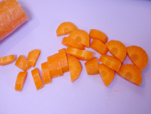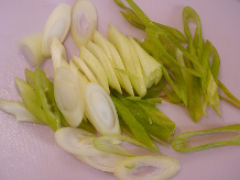- にんじんは皮をむき半月切り、長ネギは斜め切りにする。