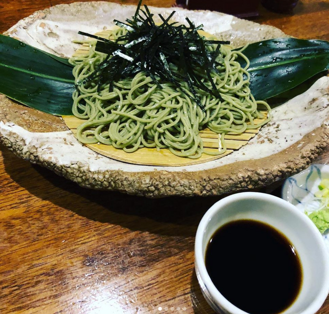 「月桃」の葉を粉末にして、練り込んで打ってあります。南国らしい甘い強い香りを、蕎麦に移したのが「月桃そば」なのです。