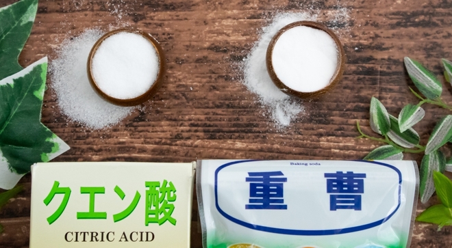 基本的には、お湯にクエン酸と重曹を混ぜるだけで炭酸風呂を作ることができます。 上記の作り方ではクエン酸を入れてから重曹を混ぜていますが、面倒な方は両方いっぺんに混ぜてしまっても問題ありません。