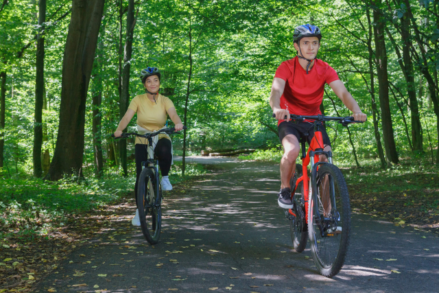 ランニングと比較して、膝や足裏などの関節にかかる負担は少なく、スピードも出るので景色を楽しみながら運動を続けられるというメリットがあります。