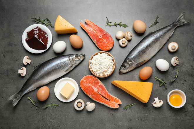 ビタミンDは干しシイタケやサケ、サンマなど。