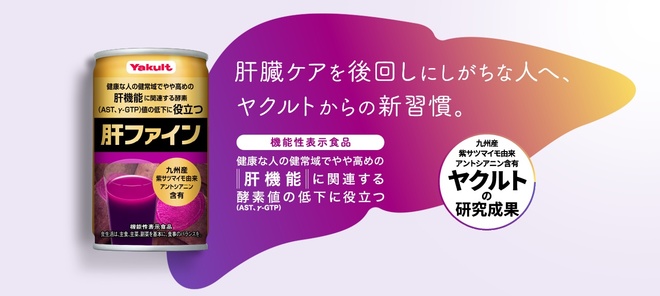 紫サツマイモ由来アントシアニンが含まれています。紫サツマイモ由来アントシアニンには、健康な人の健常域でやや高めの肝機能に関連する酵素(AST、γ-GTP)値の低下に役立つ機能があることが報告されています。