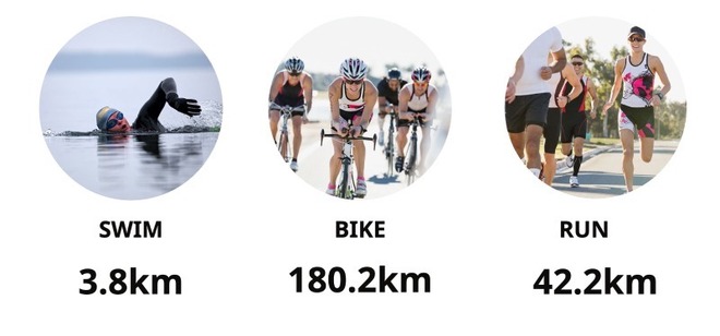 スイム3.8km・バイク180.2km・ラン42.2kmの合計約226kmで行われます。