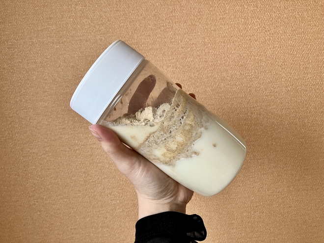 シェーカーを使わないとダマができるので、シェイカーでよく混ぜると喉ごしも良いです。