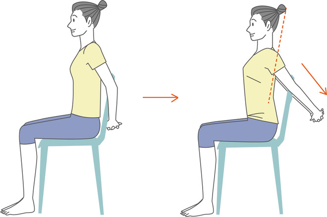- 両手を頭の上で組んで、ぐーっと背筋を伸ばしながら深呼吸を3回