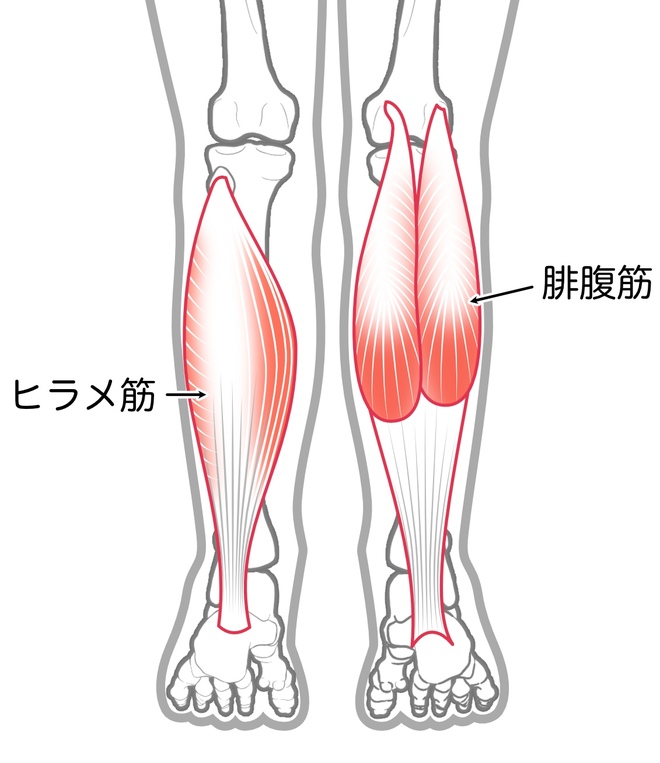 ふくらはぎは「下腿三頭筋(かたいさんとうきん)」と呼ばれ、腓腹筋(ひふくきん)とヒラメ筋の2つの大きな筋肉で構成されています。