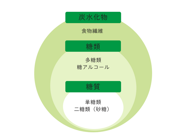 糖類とは、糖質のうち砂糖やブドウ糖、乳糖など単糖類・二糖類の総称で、多糖類は含まれません。