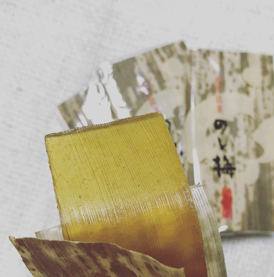 茨城・水戸の偕楽園は、石川県金沢市の兼六園、岡山県岡山市の後楽園と並び、日本三大庭園の一つで、梅の名所としても知られています。のし梅は梅肉を使い、砂糖と寒天で作ったゼリーを竹皮に伸ばし、挟み込んだお菓子です。