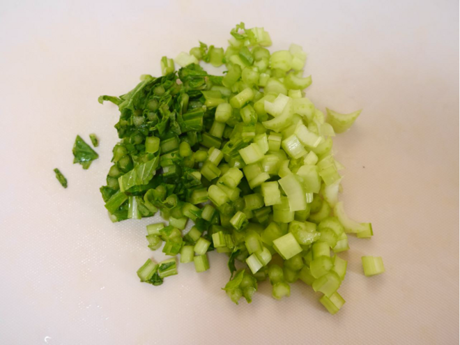 - カブの葉を食べやすい大きさに細かく切る。