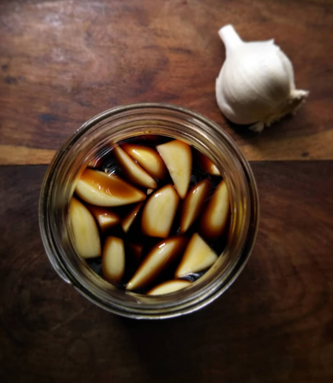醤油は2~3日経てば使えますが、1週間から10日ほど置くとより美味しくなります。漬け込んだニンニクは2週間程すれば食べられます。常温なら約1カ月、冷蔵庫なら4~5カ月保存できますので、万能調味料として常備しておくと便利ですよ。