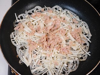 「蓮根とえのきのキムチーズピザ」の作り方