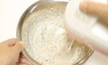 - ボールに1と水を加えてハンドミキサーでよく混ぜる。
