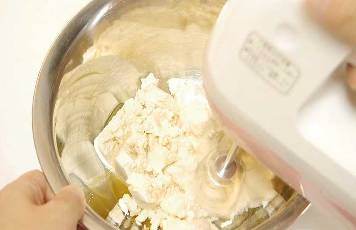 - ボールに1と水切りした豆腐を加えてハンドミキサーでよく混ぜる。