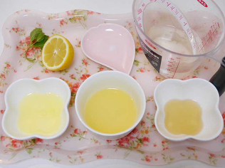 - 耐熱カップにはちみつを入れレンジで30秒程加熱する。