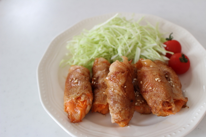 にんじんを使った簡単レシピ「にんじんとチーズの豚肉巻き」