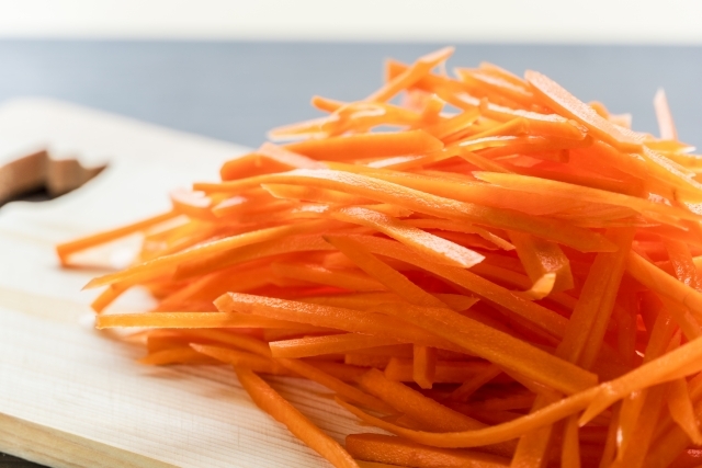 にんじんは切って冷凍も可能です。料理のたびににんじんを切るとなると手間がかかりますが、あらかじめ千切りにして保存袋に入れ、冷凍しておくと良いです。その状態で冷凍庫にて2週間ほど保存ができます。