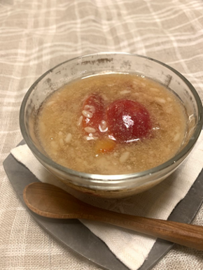 “飲む点滴”とも言われる甘酒は栄養満点。体内で合成できない9種類の必須アミノ酸がすべて含まれている“スーパードリンク”で、ここでは米麹由来(ノンアルコール)のものを使用します。タンパク質やイソフラボンを豊富に含む豆乳、整腸作用があるくず粉を使うことで、より健康感がアップするデザートです。しっかりとお腹にたまるので、食欲がない時や小腹が減ったときにもオススメです。