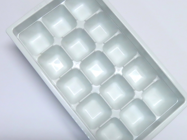 - 製氷器にいちごとブルーベリーを容量の半分くらいずつ入れ、水を注ぐ。