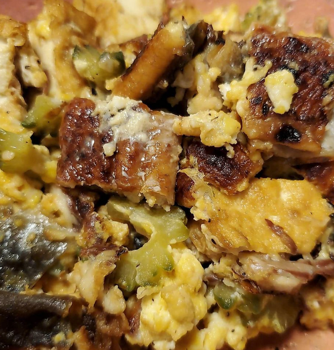 - 次にゴーヤを入れ、しんなり透き通るまで炒めます。