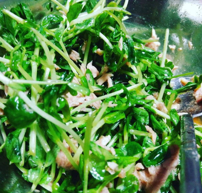 - 1の豆苗に油を切ったツナの缶詰を加えます。