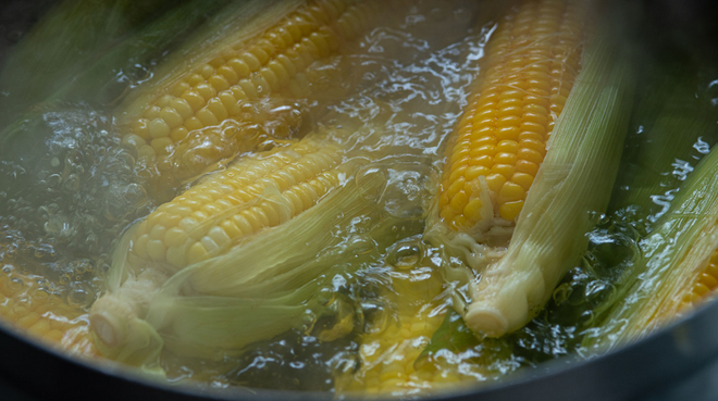 トウモロコシは皮を数枚残して茹でることで、旨味や栄養価が逃げだすことを抑えられます。できたら一本丸ごとで茹でましょう。