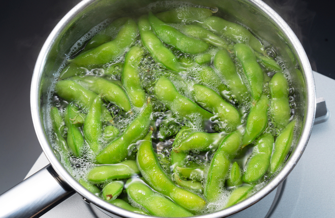 枝豆には、オルニチンという成分が含まれていて、お湯の中で溶け出します。オルニチンの流出を避けるためには、できるだけ少ない水分で調理するのが良いでしょう。コップ一杯ほどの水で5分ほど蓋をして蒸し煮するのがベターです。