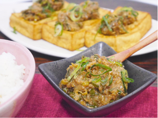 厚揚げのねぎ味噌のせ、焼きおにぎり、白飯や豆腐にトッピング、トンカツなどの揚げ物にかける など。