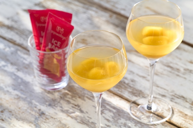 ワイングラスに2〜3個の氷を入れてゆっくりと。冷たさとともにフルーティーさが際立ち、爽やかな飲み口に。氷を入れても酸味やワインの骨格も保たれます。