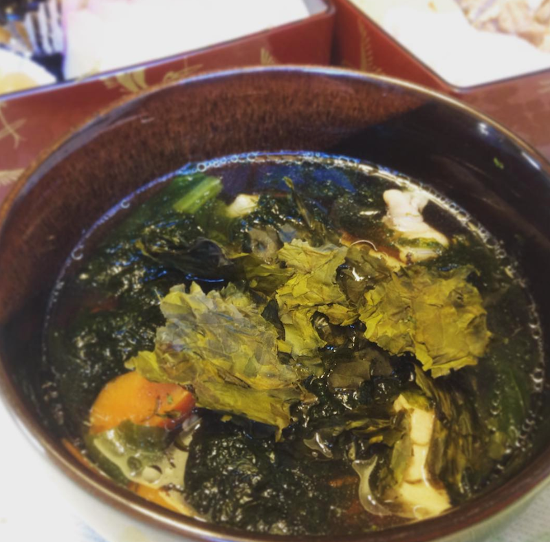 このお雑煮は、千葉県の安房地方の特産物である「ハバノリ」を使用したもの。おもに九十九里地方で食べられています。