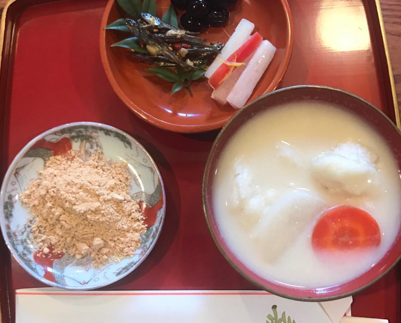 奈良のお雑煮は、関西圏に特徴的な白味噌仕立て。餅を取り出してきな粉をつけて食べるのが主流で「きな粉雑煮」と呼ばれています。さらに、丸餅でありながら焼いているのも奈良のお雑煮の特徴です。全国的には珍しい、一度で二度おいしいお雑煮です。