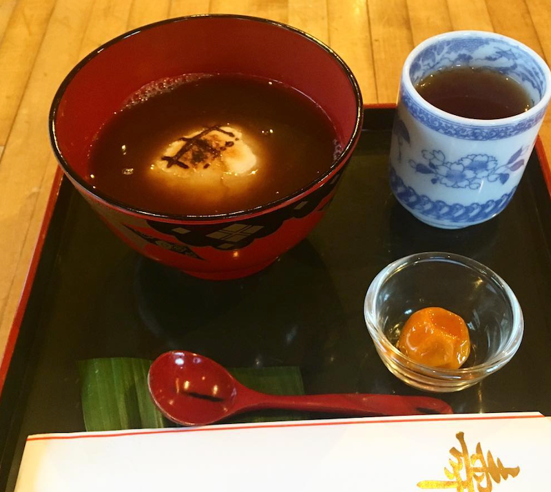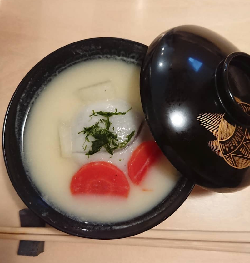 一見アンバランスに感じるお雑煮ですが、白味噌仕立てのつゆのしょっぱさと、甘い餡子がうまくマッチしています。