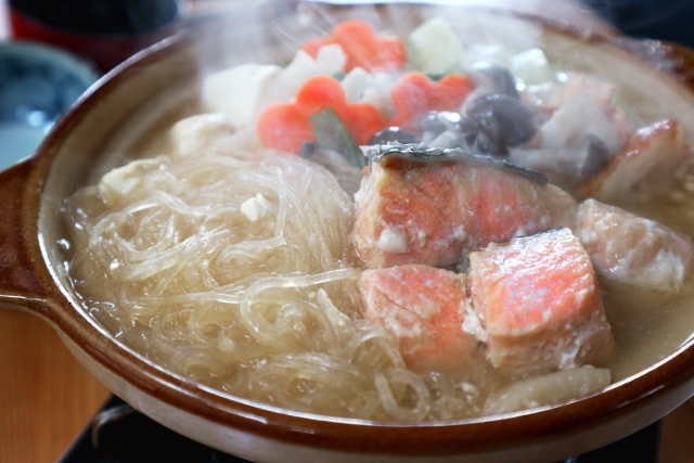鮭などの具材を味噌で煮込んだ鍋で、骨付きで脂ののった生の秋鮭が用いられます。鮭が産卵時期に遡上する石狩川から名付けられました。