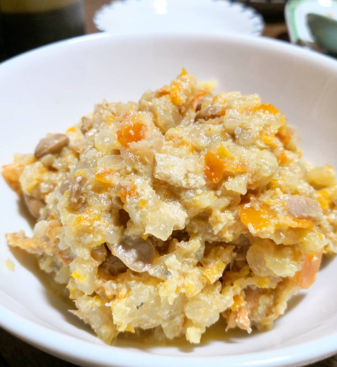 鮭の頭と大豆、根菜を酒かすで煮込んだ料理です。初午の日に赤飯と一緒に作り、稲荷神社にお供えするのが習わしです。栃木県だけではなく、群馬県や茨城県でも食べられています。
