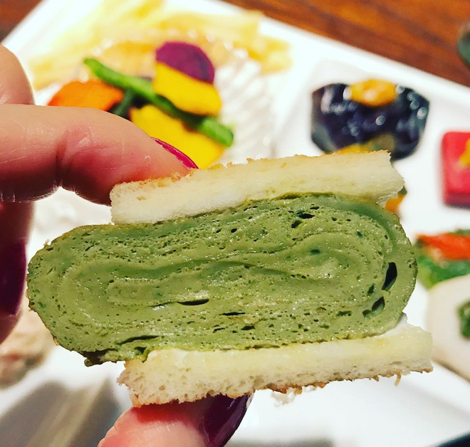 - ボウルに卵を割り、【A】の調味料と粉末緑茶を加えよく混ぜます。