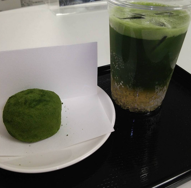 粉末緑茶をお好みの量加えよくかき混ぜます。