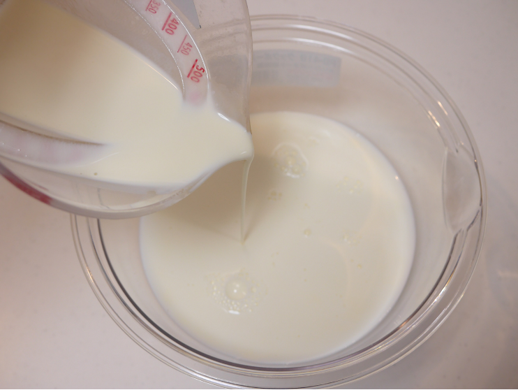- 牛乳と生クリームを合わせる。
