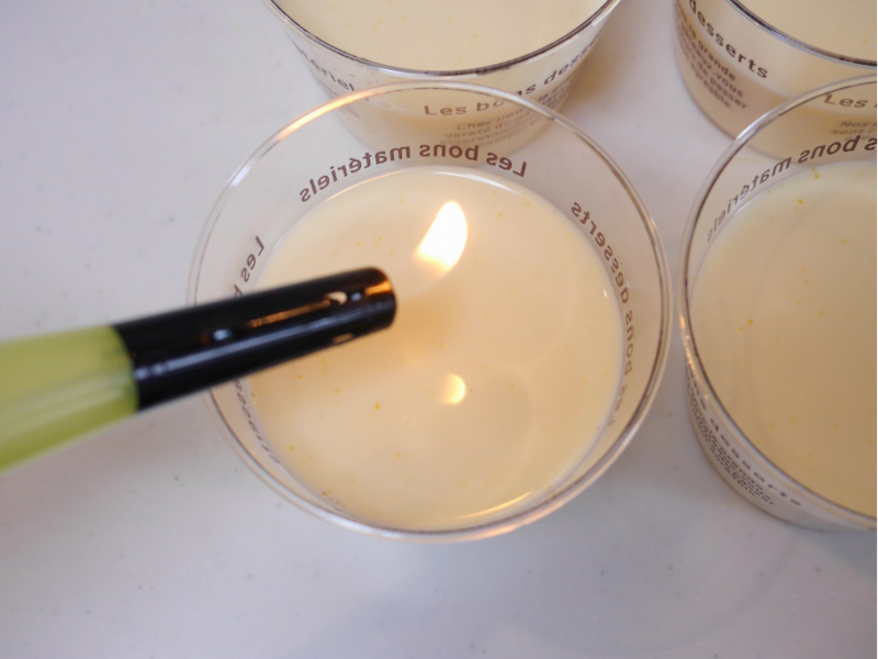 ※容器に注いだ時にできる表面の気泡は、チャッカマンなどを使い、火を近づけると綺麗に消すことができます。