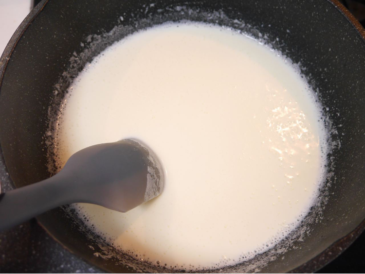 ※ゴムベラで混ぜながら沸騰直前に火を切る。