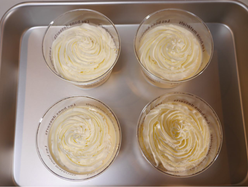 - 固まったプリンの上に生クリームを絞る。