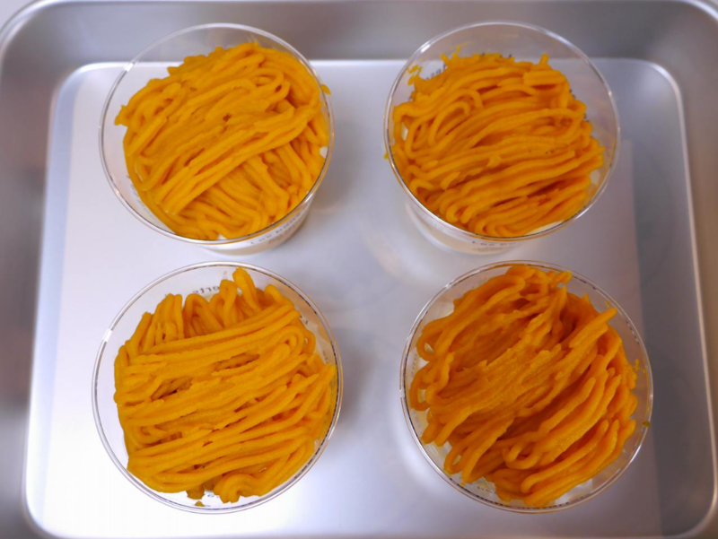 - さらにその上にかぼちゃのモンブランクリームを絞る