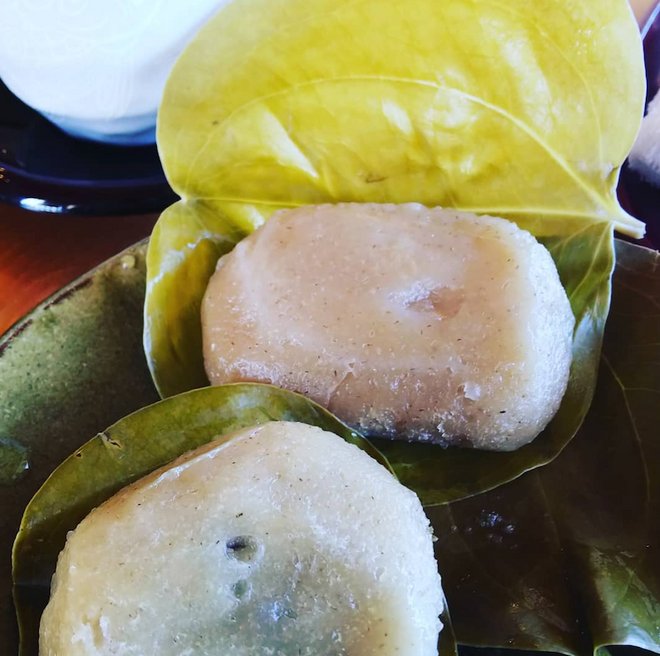 朴葉巻は長野県の木曽地方で食べられる行事食です。木曽では月遅れの端午の節句が行われ、ちまきや柏餅の代わりに朴葉を使った和菓子で祝います。米粉の生地であんこを包み、朴の木の若葉でお餅を巻いて蒸した和菓子です。