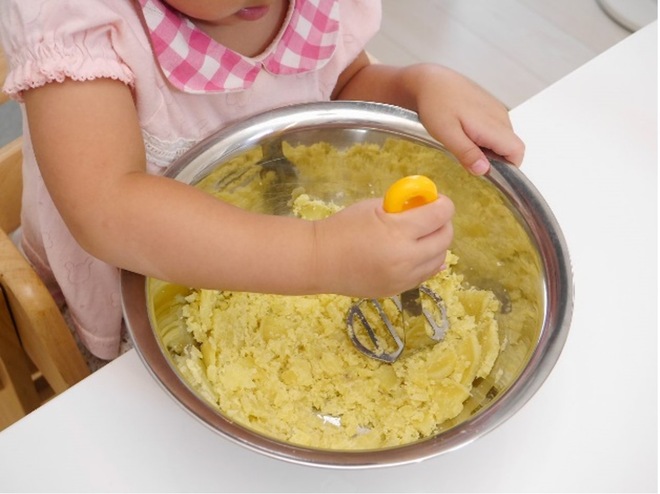 つぶす、混ぜる、こねる、包む…子どもが楽しめる行程が盛りだくさん。