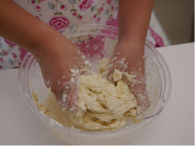 - 生地がまとまってきたら粉っぽさがなくなるまでよく捏ねる。