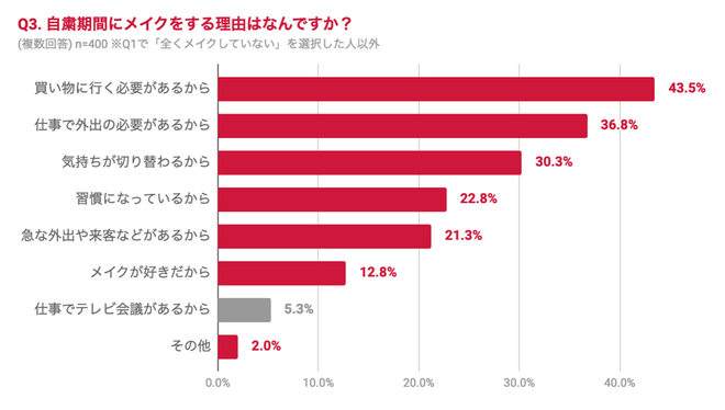 自粛中もメイクする理由で最も多いのは「買い物にいくため」