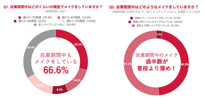 66.6%が自粛期間中にもメイクをしている!過半数が「普段より薄めのメイク」に